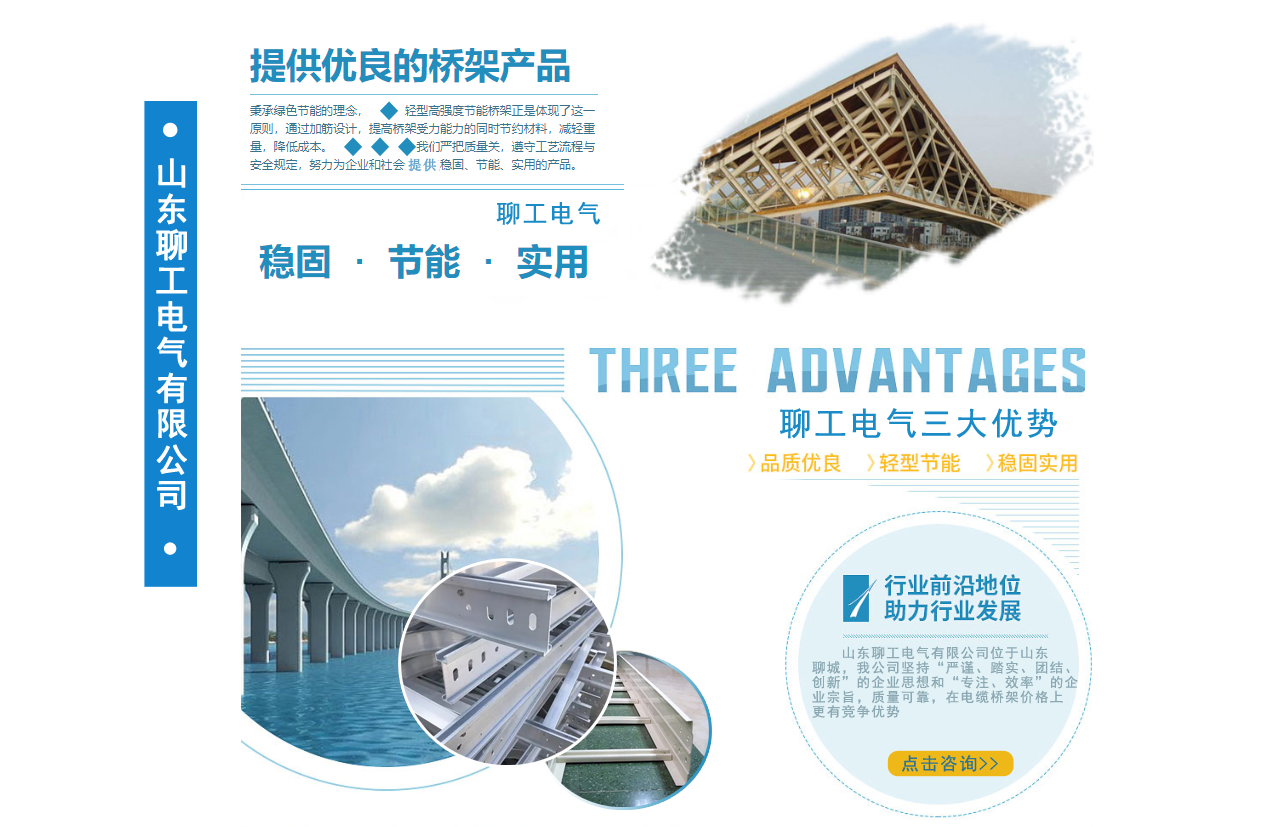 山東聊工電氣有限公司位于山東聊城,是一家銷售各類橋架的公司,公司主營鍍鋅防火噴塑橋架,鍍鋅防火電纜橋架 ,不銹鋼電纜橋架,熱浸鋅電纜橋架,鋁合金電纜橋架,熱鍍鋅電纜橋架,梯式電纜橋架等我公司堅持“嚴謹、踏實、團結、創新”的企業思想和“專注、效率”的企業宗旨,質量可靠,在電纜橋架價格上更有競爭優勢。公司追求品質,配有研發人員,進行產品的改革和創新,服務先進走出了一條富有企業特色的可持續化發展之路! 我公司鄭重向你承諾:保證最好的質量,以低的價格,完善的售后服務,來答謝新老客戶。可提前電話聯系。...